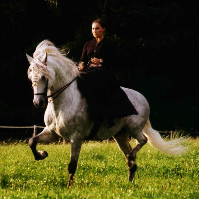 Vater einiger wundervoller Nachkommen, traumhafter Showhengst in allen Lektionen der Spanischen Hohen Schule, erster Andalusier, der auf einem klassischen Dressurtunier präsentiert wurde, geliebter Lehrmeister unserer Kinder - und nie vergessener Freund, der inzwischen verstorben ist.
